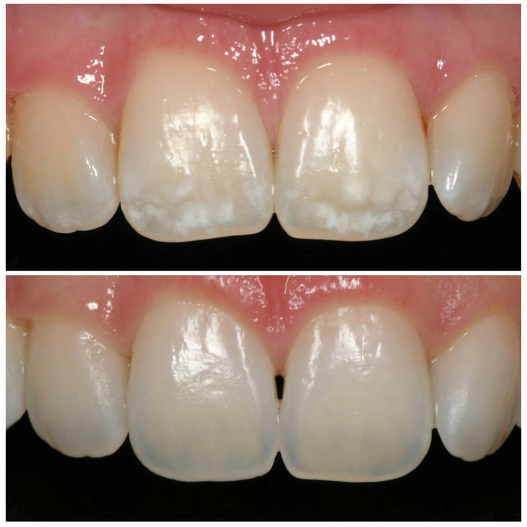 Med en tandblekning och/eller infiltrationsteknik (resinfiltration) så kan man ofta få bort missfärgningen. Se video nedan för exempel.