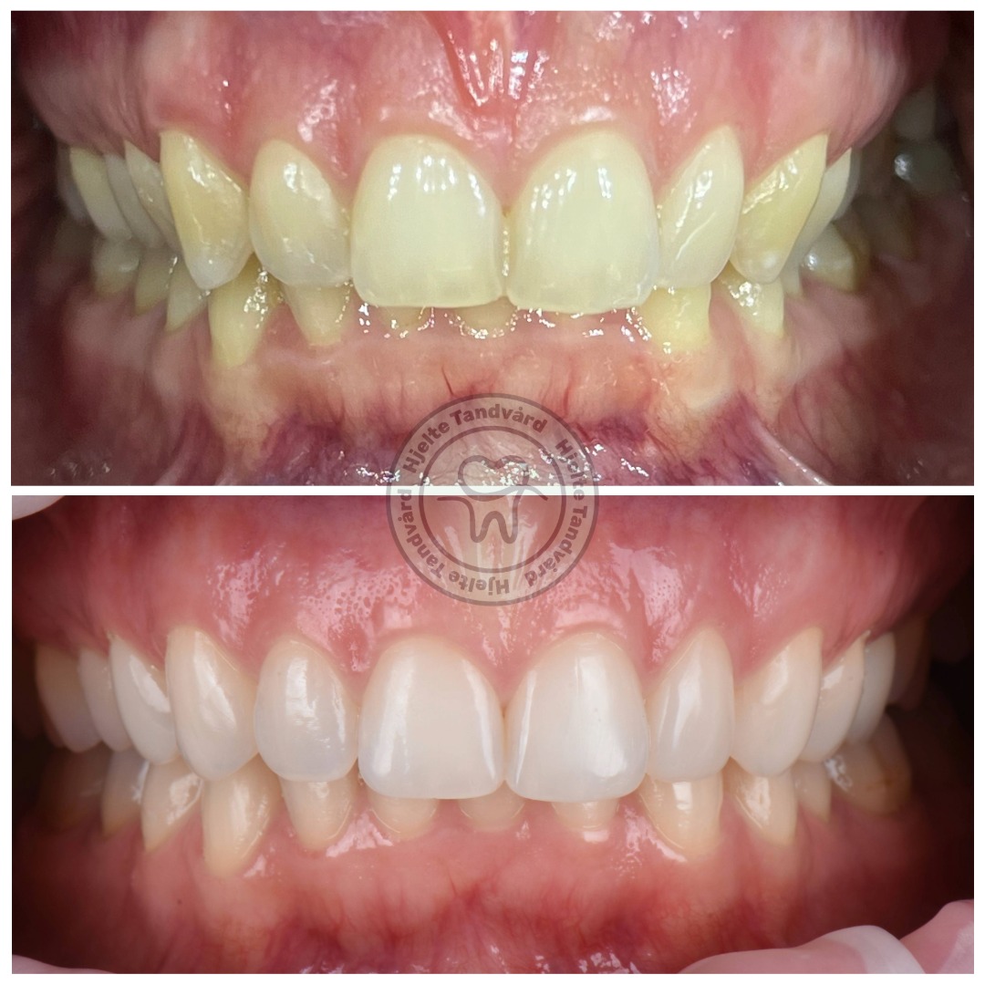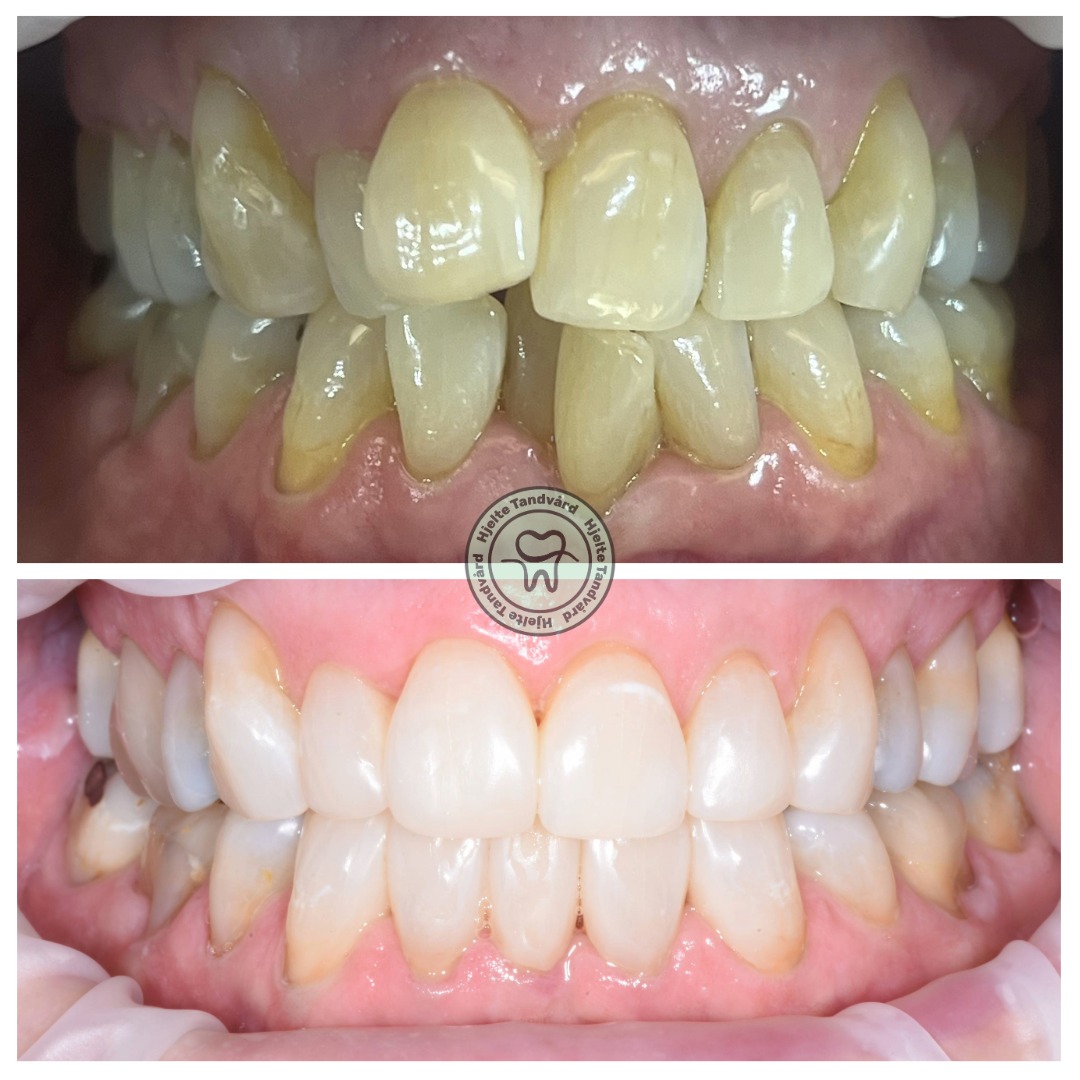 Vi ställer en diagnos på dina tänder och bedömer utifrån denna om en tandblekningsbehandling kan genomföras. Vi använder oss av metoden där tänderna bleks med blekskenor hemma. Detta är en skonsam behandling som inte skadar dina tänder. Vi samarbetar med Healthy Smile vid blekning av tänder.